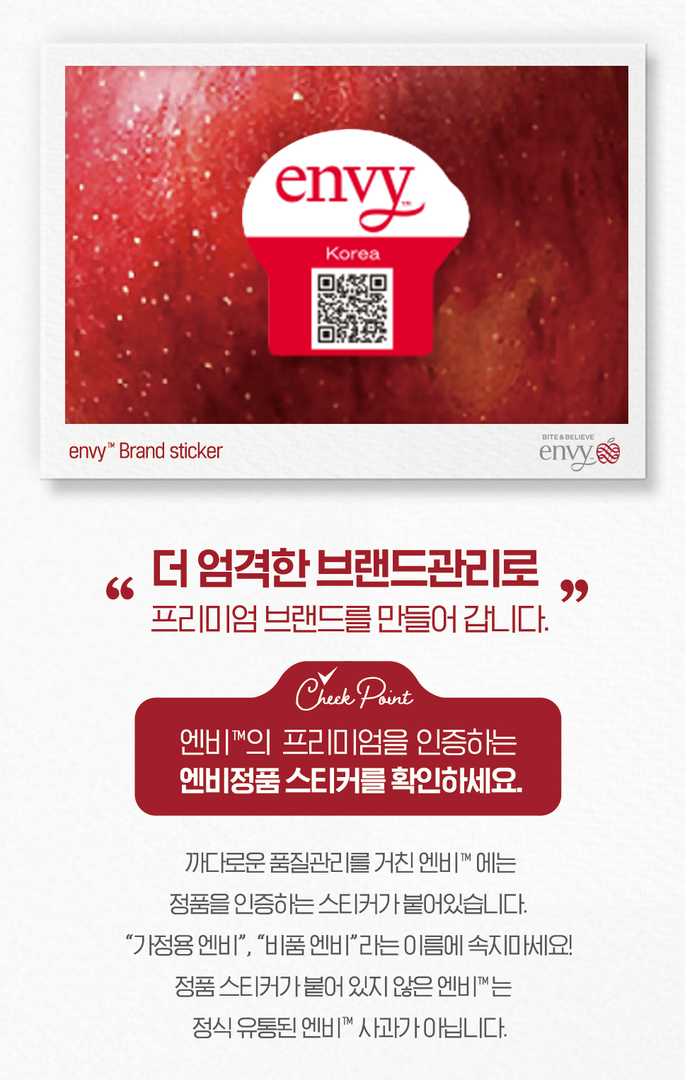 정품 스티커가 없으면 정식 유통된 엔비사과가 아닙니다.